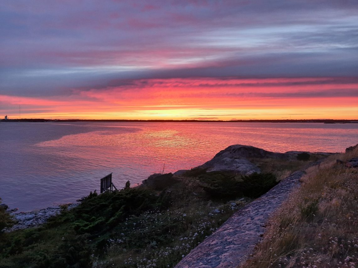 Saimme tervetuliaisiksi nauttia auringonlaskun upeasta väriloistosta! Gustu antoi taas parastaan!