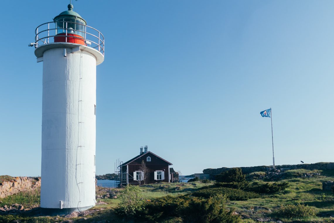 Russarön majakan välähdyksiä Laura, Juha ja Ari taltioivat ylhäältä muurien kupeesta.