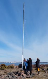 Hanko otti innokkaan talkooporukan vastaan lauantaina 16.4 aurinkoisena ja kirkkaana. Jocke & Sun Funin gastit luotsasivat meidät turvallisesti Gustuun, missä Mirka ja Maria toivottivat meidät lämpimästi tervetulleeksi. Viikonloppu avattiin juhlallisesti lipun nostolla. Se on merkkinä, että saarella ollaan paikalla, vähän samaan tapaan kuin isännän lippu mantereella ja saarelle voi siten tulla piipahtamaan (toki pääsääntöisesti kesäaikana).
