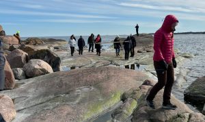 Jokaiselle kolmelle ryhmälle oli varattu tehtäviä viikonlopuksi niin, että kaikki saaren keskeiset toiminnot ja talkootöiden peruskuvio tuli läpikäytyä Marian, Mirkan ja Anne-Marin johdolla. Ennen iltapäivän tehtäviä lähdimme kuitenkin ensin kiertämään saarta, siltä osin kuin se oli mahdollista ja sallittua. Kaikki me ihastelimme yhteen ääneen sädehtivää merta, upeita kallioita ja muutamilla meistä oli myös matkassa kiikarit, joten jokunen tirppakin tuli bongattua.  Että tämäkö porukka ei rakastaisi merta yli kaiken – ei enää pienintä epäilystäkään.