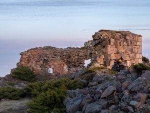 Ei meidän retkeläisten lankalauantai ollut pelkästään työntekoa ja talkooinfoa. Pääsimme nauttimaan saaren luonnosta ja sen elämästä. Kurkiaura lensi saaren yli aiheuttaen suurta ihastusta. Västäräkki ja mustaleppälintu lauloivat muureilla. Haahkakoiraan soidinääni soi kumeahkona haahkanaaraille ja kyhmyjoutsenet partioivat aluetta. Teimme saarikierroksen siltä osin kuin se oli mahdollista ja sallittua. Tarjolla oli hiukan kiipeilyä ja kalliolla hyppelyä rohkeimmille, mutta myös hyviä polkuja tasaisemman tien kulkijoille. Pääsimme ihailemaan menneiden ajan tägejä niillä harvoilla sileillä kallioilla, joita Gustavsvärnistä löytyy.