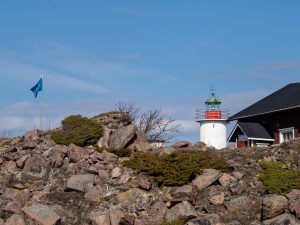 Turvallisuusinfon jälkeen nostimme Suomen Majakkaseuran lipun salkoon. Lipulla ilmoitetaan, että majakkaseuralaiset ovat paikalla ja vierailijat ovat tervetulleita saareen kahville ja ostoksille. Ja vierailijoita kävi tälläkin kertaa. Saarelle saapui niin melojia kuin veneilijöitä. Selkeästi kevät on saapunut saaristoon.