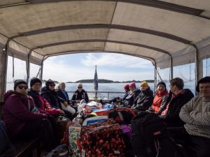 Tälle retkiviikonlopulle olikin ilmoittautunut runsaslukuinen majakoista kiinnostunut porukka, Sari, Pekka, Nina, Nipsu (Niina), Heli, Vilja, Outi, Taina, Sade ja Nathalie. Pian saapuikin retkeläisiä noutamaan SunFunin Kulkuri 34 vene, jota kipparoi Jocke miehistöineen. Jocke ja SunFun vastaa myös tulevana kesänä Suomen Majakkaseuran talkoolaisten kuljetuksista.