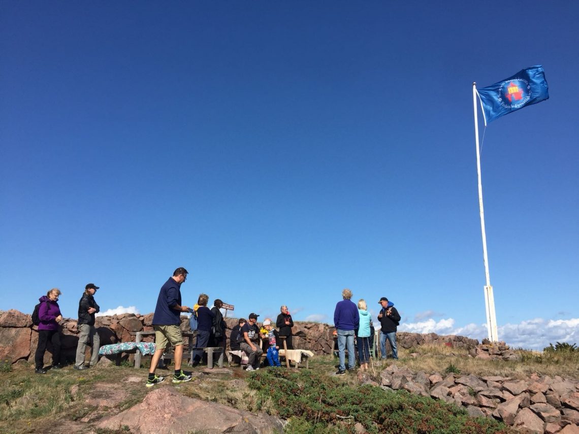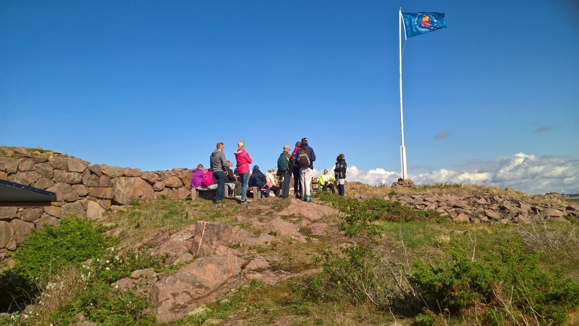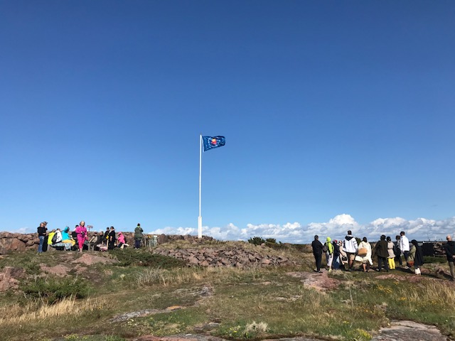 Kun sitten ensimmäinen venelastillinen vierailijoita saapui laiturille, paistoi aurinko vastapestyltä siniseltä taivaalta. Tuuli sen sijaan ei talttunut. Se puhalsi edelleen, ja sai helmat ja Majakkaseuran lipun vinhasti lepattamaan, mutta iloa ihmisten kasvoilta tuuli ei onnistunut pyyhkimään!