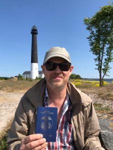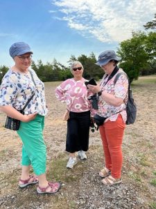 Retkiporukkamme kokoontui sovitusti Eckerö Line-autolautan varta vasten meille varatussa loungessa, jossa saimme nauttia maukkaan aamiaisen. Retken vetäjät Kirsi ja Outi kertasivat joitakin oleellisia asioita retkeen ja tähän ensimmäiseen päivään liittyen ja kävimme osallistujat läpi pienellä esittelykierroksella. Hajaannuimme sitten mm. laivan kauppaan tekemään ostoksia. Useampi meistä hellettä luvanneen sääennusteen lukeneista ja näin ollen lyhyillä housuilla varustautuneista osti pitkävartiset sukat punkkeja silmällä pitäen ja hauskannäköiset hellehatut lähtivät myös mukaan suojaamaan retkeläisten päitä auringon paahteelta.