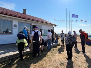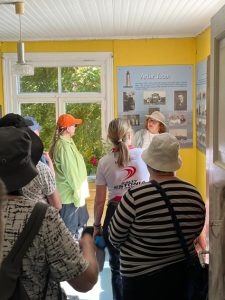 Vilsandin pieni museo ja oppaamme Kadri kertomassa ”Lintujen kuninkaan” tarinaa