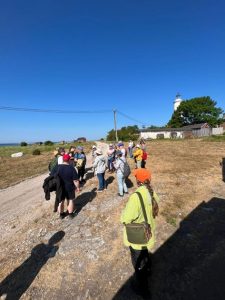 Kulkiessamme majakalle hietapohjaista niemeä pitkin, porukan lintubongarit tekivät monia havaintoja niin silmillä ja kiikarein kuin ympäristön ääniä kuulostellen. Majakasta jonkin verran ulommas merelle päin näkyi pieni kallioluoto, jolle hylkeet olivat kokoontuneet päivää paistattelemaan. Oli häkellyttävää havaita, että aluksi tuulen ujelluksena pitämämme vaimea taustaääni osoittautuikin hylkeiden lauluksi, joka kantautui vettä pitkin rannalle.