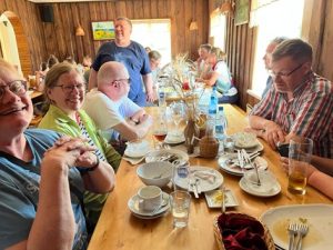 luvun riiheen rakennetussa savusaunassa. Illallisella (tarjolla mm. herkullista lammaspataa) totesimme kaikki, kuinka mahtavia kokemuksia ja elämyksiä olimme matkan varrella kerryttäneet. Suuri ja lämmin kiitos kuului tarkan suunnittelutyön ja sisällöltään sekä ilmapiiriltään kerta kaikkiaan oivallisen ryhmämatkan aikaansaaneille Outille ja Kirsille!