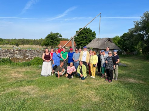 Majoituimme päätalon yläkerrassa sekä pihapiirin aittarakennuksissa. Kävelimme iltauinnille pikkuiselle lähijärvelle, jonka jälkeen ruokailimme kaikki yhdessä päärakennuksen isossa salissa. Isäntäväkemme oli valmistanut maukkaan illallisen itse alusta alkaen, minkä lisäksi illan ohjelma sisälsi yhteislauluja Valton säestäessä kitaralla. Olihan se mieleenpainuvaa, kun virolaisen perinnetilan tuvassa, lämpimässä kesäyössä kajautimme Saarenmaan valssin, Oolannin sodan, Rakastan elämää… ja skoolasimme raikkaalla kotitekoisella raparperimehulla!