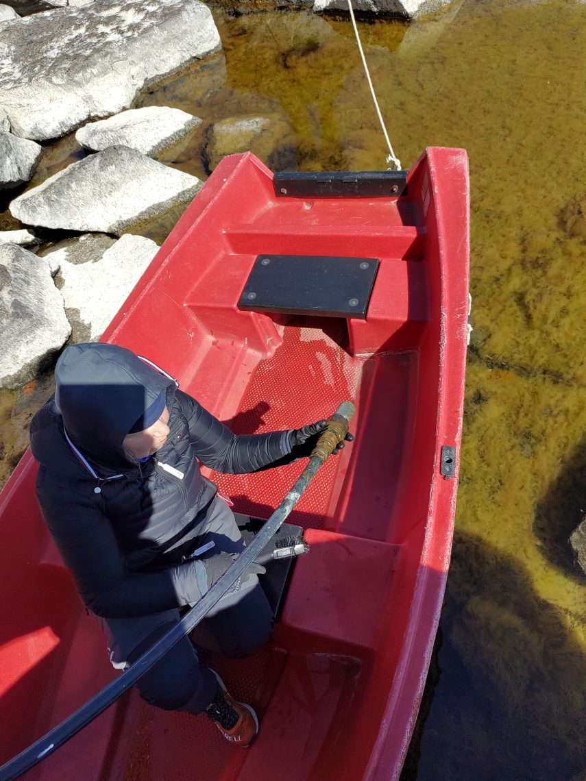 Aleksei lähti kokeilemaan poijulle ajoa Sari mukanaan. Eteläsatamassa oli vielä pientä aallokkoa. Hyvin sujui edestakainen ajo. Yamahan moottorin nosto ja lasku on hyvin yksinkertainen toiminto, mutta miten saadaan valokuva siitä nappulasta joka siihen tarvitaan? On sen verran ahtaat paikat. Yritetään.