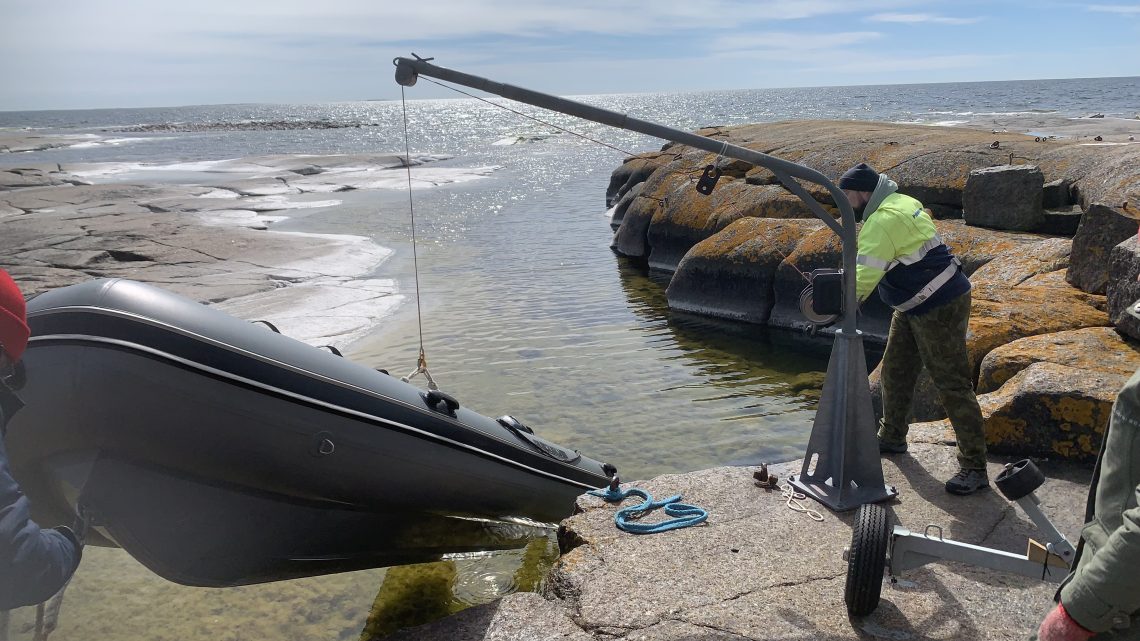 No niin, palataanpa maanpinnalle. Harjoittelimme veneen nostoa ja laskua, mutta emme lähteneet mihinkään, koska tuuli pukkas meTaisan