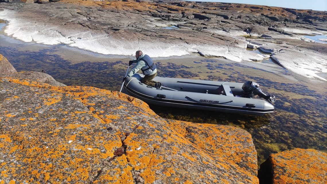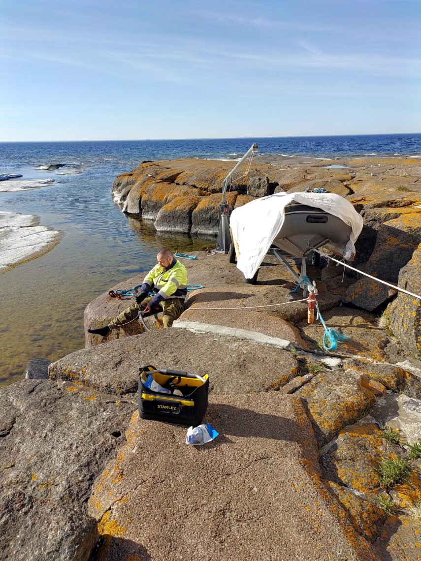 The weather today is absolutely amaizing: the sea is like a mirror, bright sunshine and no wind. We took the opportunity to take the inflatable boat out to sea. All volunteers have to know how to operate motorboat because not often incoming boats can dock on the island itself, so everyone who is here must be able to reach the boat and pick up the guests. I was trained today and I liked it very much, I was as excited as a kid. We drove to the island to the seals and a circle around Märket. I hope, second half of this day will be same good.