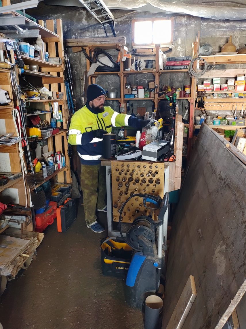 Urakointi siirtyi ylämakasiiniin, jossa oli katsottu jo Taiston kanssa, että yksi romahtamassa oleva rivi täytyy käsitellä. Taisto pilkkoi osan sisään kannettavista puista pienemmiksi ja Aleksei täytti puulatikot niiltä osin kuin tarvetta oli. Saatin ylävarastosta se neljäs rivi pois ja nostettiin Sarin kanssa aluspuut pois ja ruuvattiin välipuu irti. Ja nuoltiin lattia puhtaaksi.
