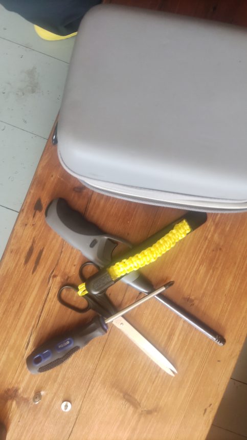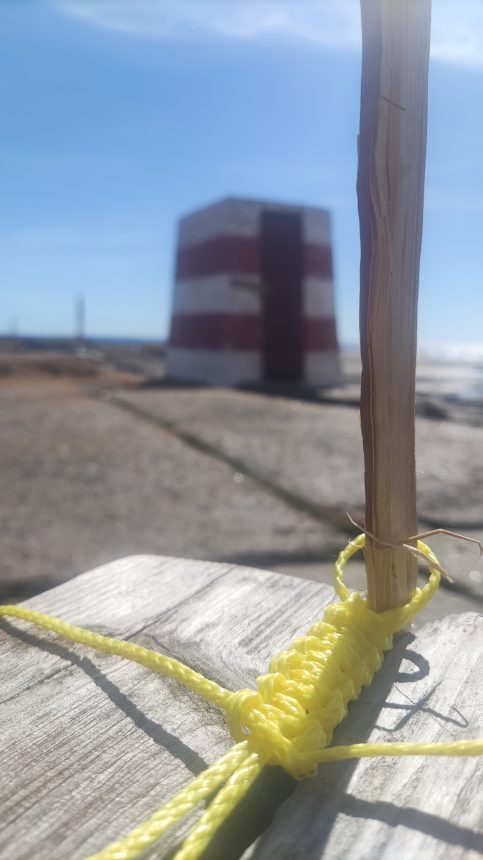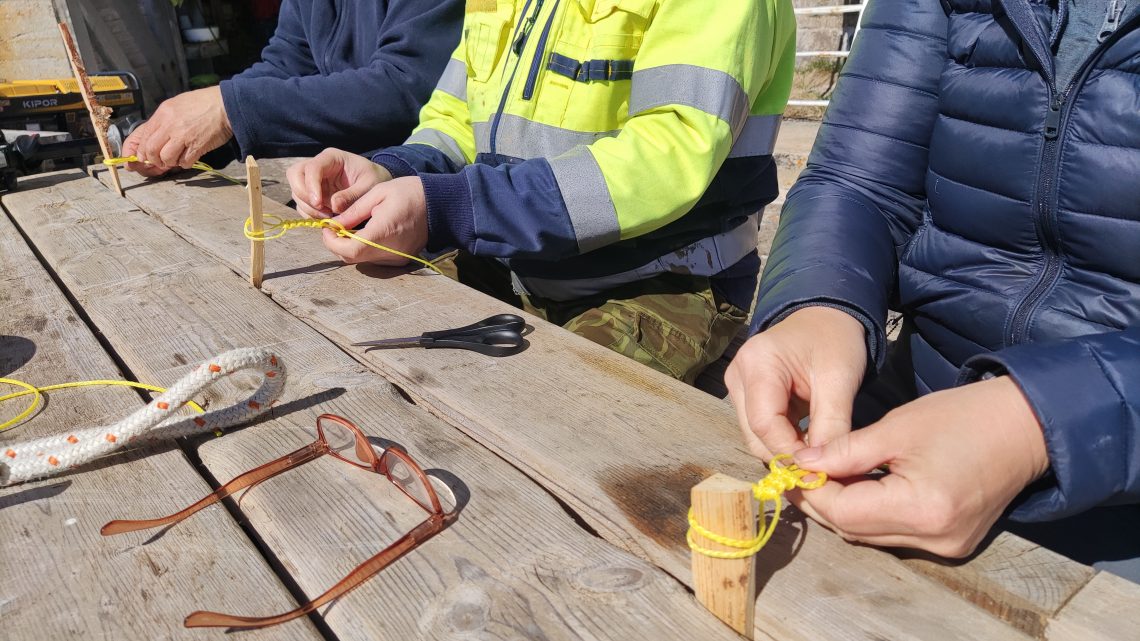 Sari piti oppitunnin paracord-nauhan tekemisestä, se sama nauha, jolla Aleksein dronesalkku korjattiin.