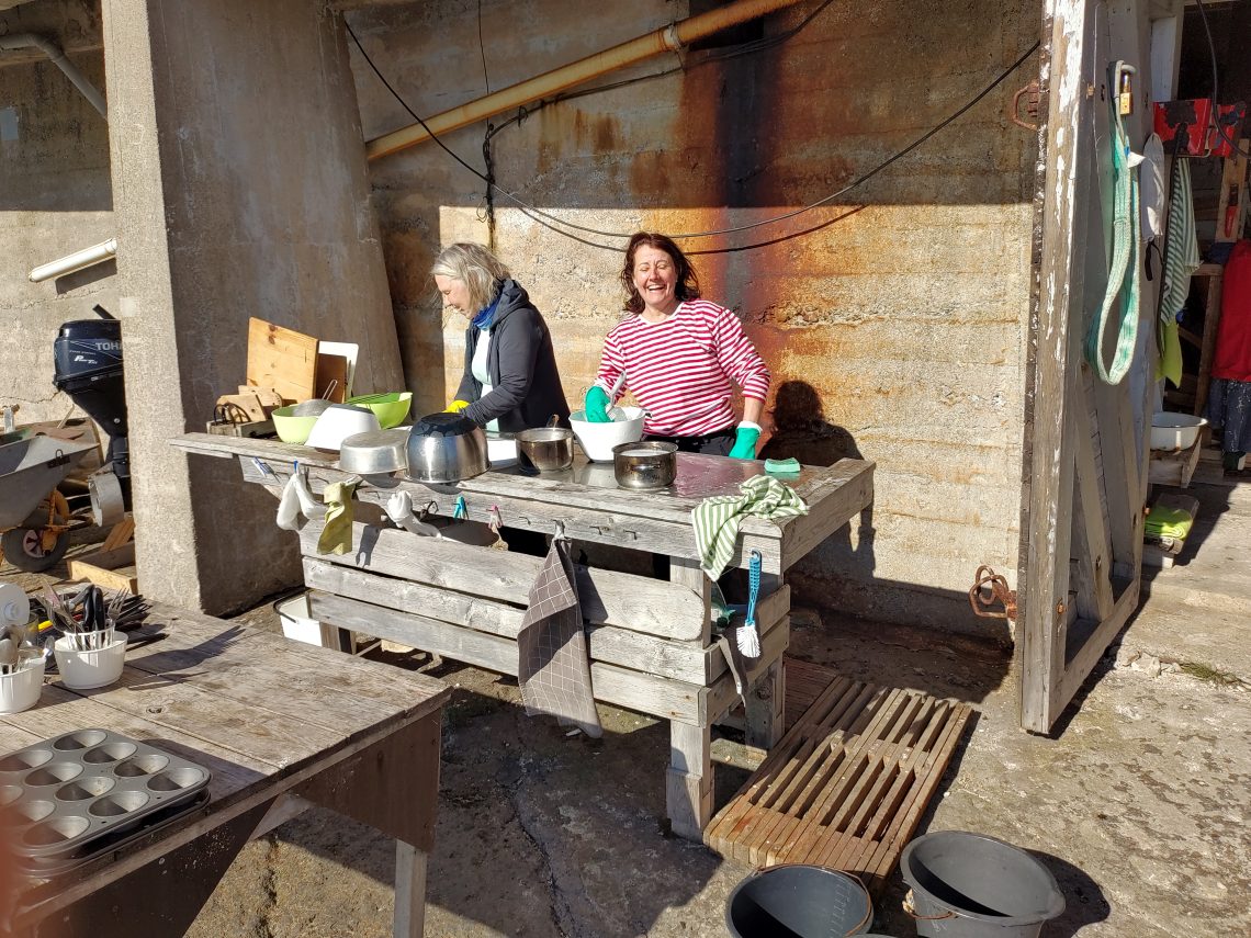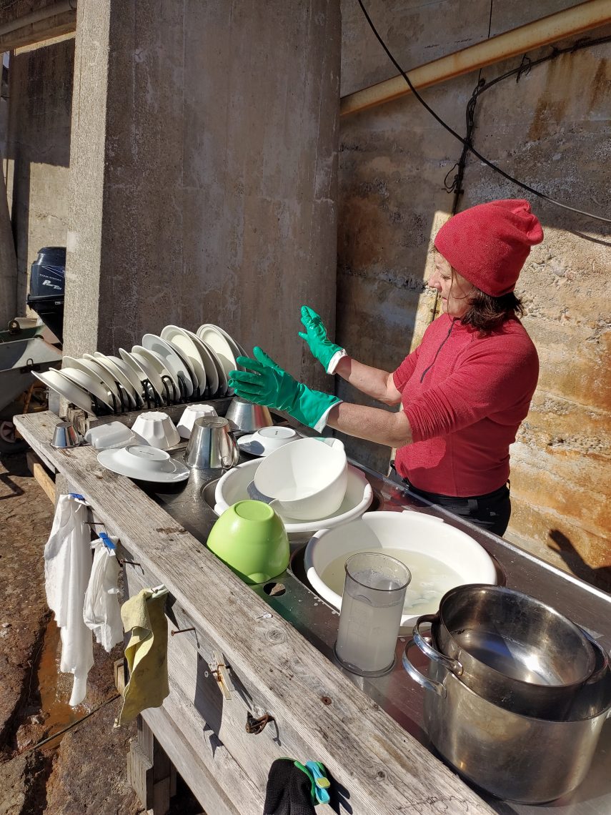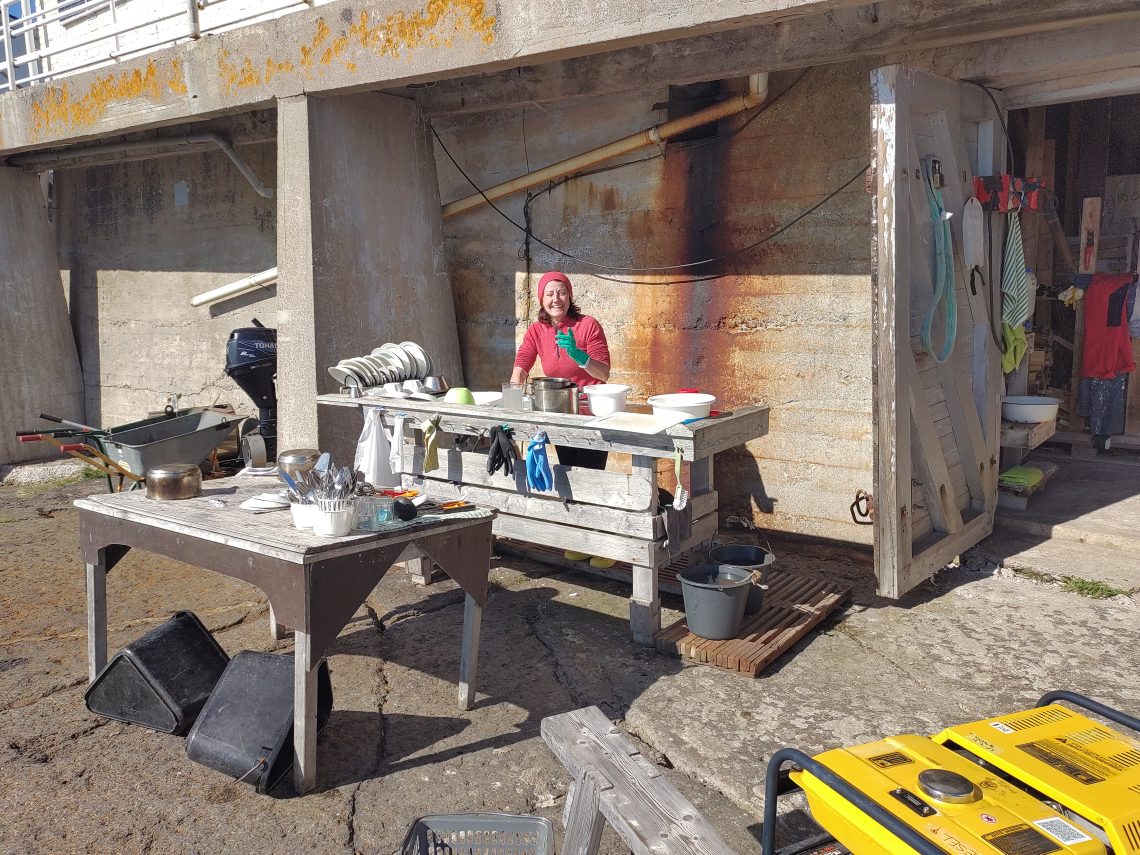 Tänään oli ilo tiskata (sain luvan), tiskipaikalla oli kuuma! Sari tuli esipesemään ja kuivaamaan.