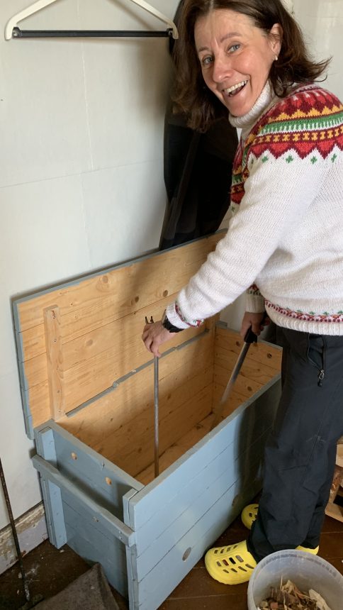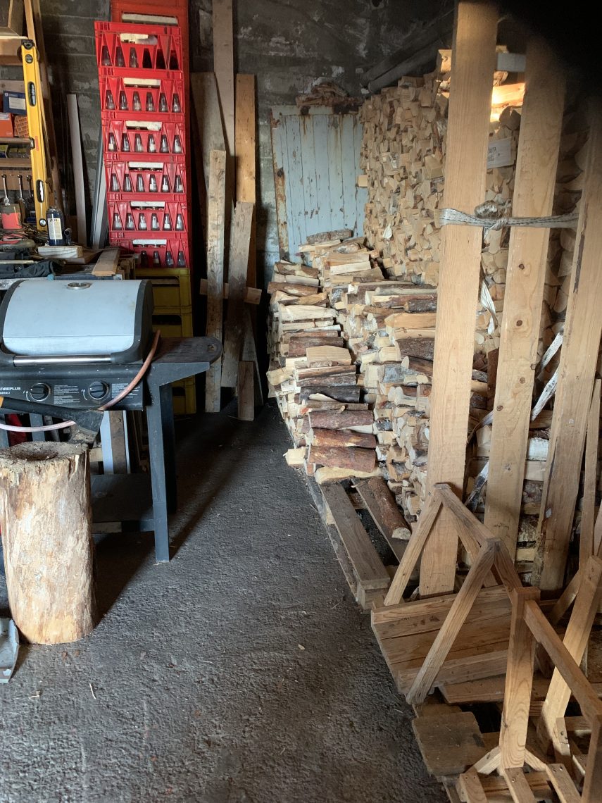 Eilen ja toissapäivänä ulkoilutettiin tyynyt, patjat ja viltit. Eilen oli jo niin reipasta tuulta, että patjoja jouduttiin pitämään paikoillaan tiilillä. Tänään päätettiin siivota puulaatikot, kaikki tyhjennettiin ja “lakaistiin”, saatiin aika paljon sytykettä tynnyriin.