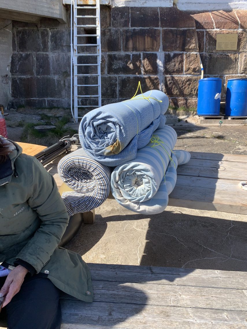 Viikon 19 ryhmä toi uusia patjoja, ja jo viime syksynä oli eroteltu huonoimmat patjat vietäväksi mantereelle Sorttiin. Saimme kuin saimmekin ne miltei samankokoisille rullille kuin ne ovat ostettaessa.