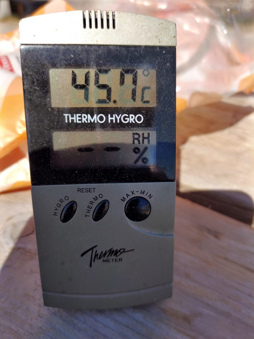 Laitettiin mittari etupihan pöydälle, oli muuten lämmintä.