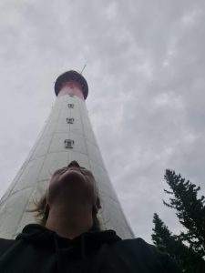 Jäätyämme kahdestaan saareen, otimme muutamat taidekuvat majakan edessä ja pian saimmekin seuraavat asiakkaat kauppaan. Ihastuttava nuoripari viereisestä saaresta tuli tutkimaan Yttergrundin majakkasaarta. Jätskit maistuivat heillekin ja meillä oli kiva juttuhetki porukalla kaupan “kahviossa”, kun ulkona oli aurinko mennyt jo pilveen.