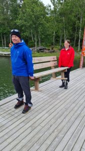 Ennen osan porukasta lähtöä söimme yhdessä rääppiäislounaan, eli koitimme tyhjentää vähän jääkaappia ja syödä Seijan edelisinä päivinä tekemiä herkkuruokia. Ja toki Seija oli ehtinyt pyöräyttää vielä raparperipiirakan jälkiruoaksi kahvin kanssa. Maalien kuivuttua kasaan, maalausprojekti jäi seuraaviin aikoihin, joten kannoimme penkit takaisin laiturille. Lopulta koitti se hetki, kun kannoimme lähtijöiden tavarat laiturille, ja Harri lastasi ne veneeseen, hyvästit olivat haikeat, meillä oli niin mukava alkuviikko tällä porukalla.