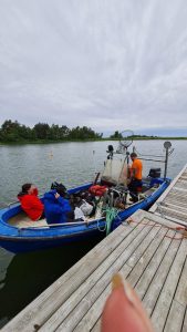 Keskiviikko tuli yllättäen ja pyytämättä, tänään kolme viidesosaa meistä lähtee jo kotia kohti 🙁 Alkuviikko meni todella nopeasti… Heini ja Seija jäävät loppu viikoksi pitämään saarta asuttuna. Aamulla lähtijät pakkailivat telttojaan ja tavaroitaan kun samalla saimme asiakkaan kaupalle, mukava mies, joka ajeli paatillaan rannikkoa pitkin ihastellen saarten ja meren luontoa. Hän pysähtyi kaupalle jäätelölle ennen kuin paatti jatkoi matkaansa.