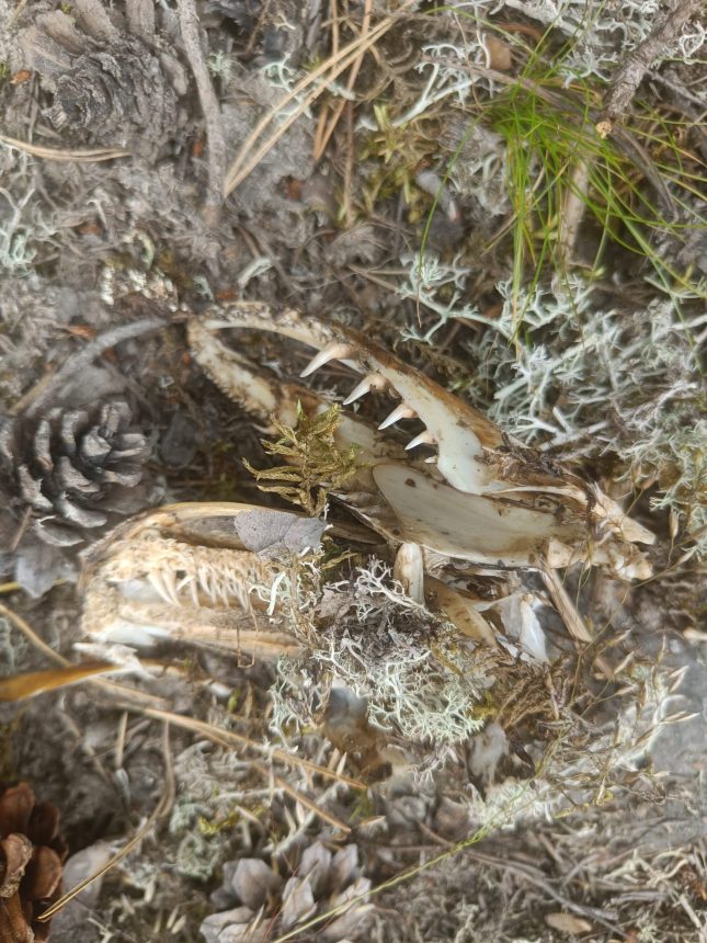 Kaisa törmäsi tämännäköiseen kalloon kävelyllään. Tekoälyn mukaan kyseessä olisi todennäköisesti joko valkohäntäkauriin tai puuman kallo, me kuitenkin arvelimme sen kuuluvan hauelle?