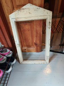 Veimme sen kauppaan, jossa toinen puukehys oli jo valmiina. Niistä saisi kivan taulunkehyksen. Siirsimme osan kuistin penkeillä olevista tavaroista laatikoihin. Illalla ehdimme saunoa yhdessä.