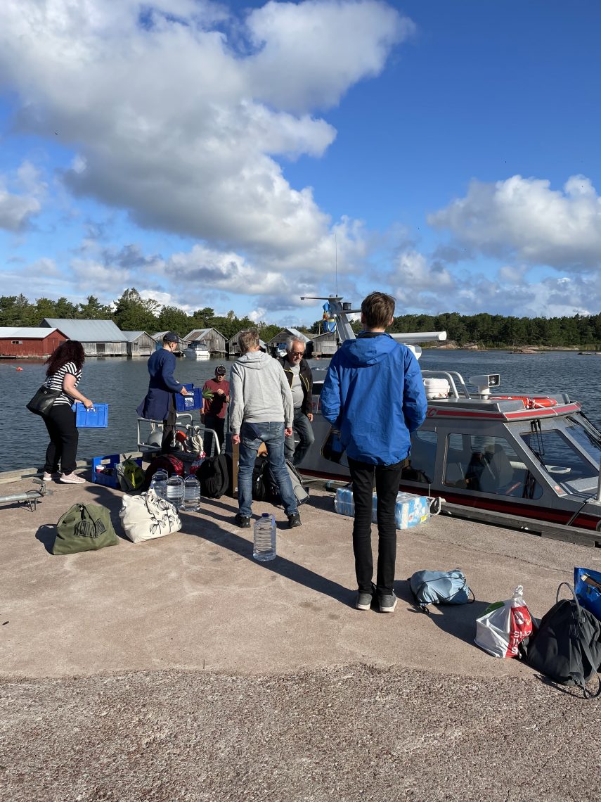 Jo tulomatka otti talkoolaisista luulot pois. Meitä Käringsundista kuljettamaan lähteneelle Sefyrille tuli jo alkumatkasta ongelmia ja pääsimme lähtemään matkaan Bengtin kuljetustuurauksen turvin. Täydet juomavesikanisterit haettiin matkalla Fredrikin mökiltä. Pääsimme matkaan tuuliselle merelle noin tunnin myöhässä normaalista vuoronvaihtoaikatalusta.