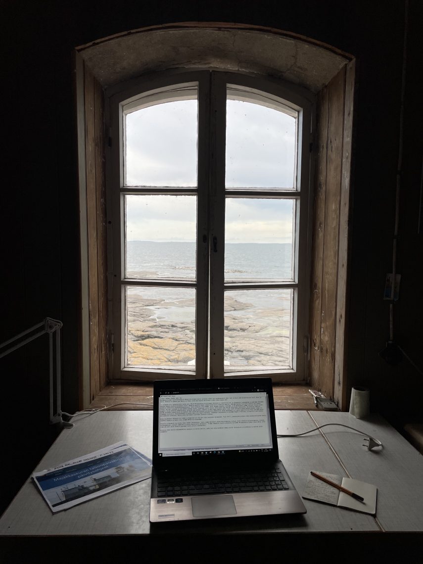 Tänään on seurattu herkeämättä etenkin tuulen nopeutta (“Mikäs on tuulen tilanne nyt?” Tätä kirjoittaessa puuskissa 20 m/s, tuuli vielä vain 18 m/s). Kallioon tyrskyäviä komeita vaahtopäitä ja saaren yli aina vain enemmän ja enemmän ulottuvaa vesimassaa käydään ihastelemassa ja kuvaamassa, ja hommaan kutsutaan nekin, jotka eivät juuri samalla hetkellä ole aaltojen tarkkailuasemissa. Ehkäpä tänään toteutuu meidän kaikkien ensimmäisen illan toive myrskystä majakalla? Ainakin Jori jo aamupäivällä pohti, että “Nyt alkaa näyttää ihan asialliselta!”