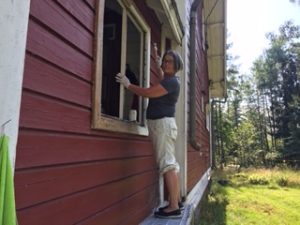 Aamulla aikaisin verkoille ja kalaa tuli hienosti. Tämähän sujuu. Iloisesti löysimme kaikki omat tehtävät, Aija haketti ja kunnosti polkuja, Helena teki toisessa veskissä ihmeitä maalin ja nikkaroinnin myötä, Vuokko aloitti saamansa ikkunaprojektin.