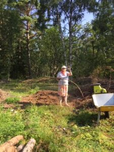 Aamutoimeksi punkin poisto ja huokaus. Työt jatkuivat samaan tapaan kuin edellisinä päivinä, haketusta, maalausta, arkiaskareita ja siivousta.