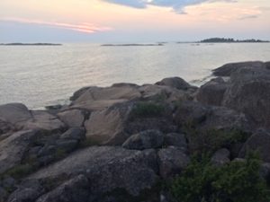 Illalla ihailimme kalliota, kiipesimme ylös-alas, välillä karhun askelin nelinkontin. Näin korkeita eivät kivet ole Saaristomerellä.