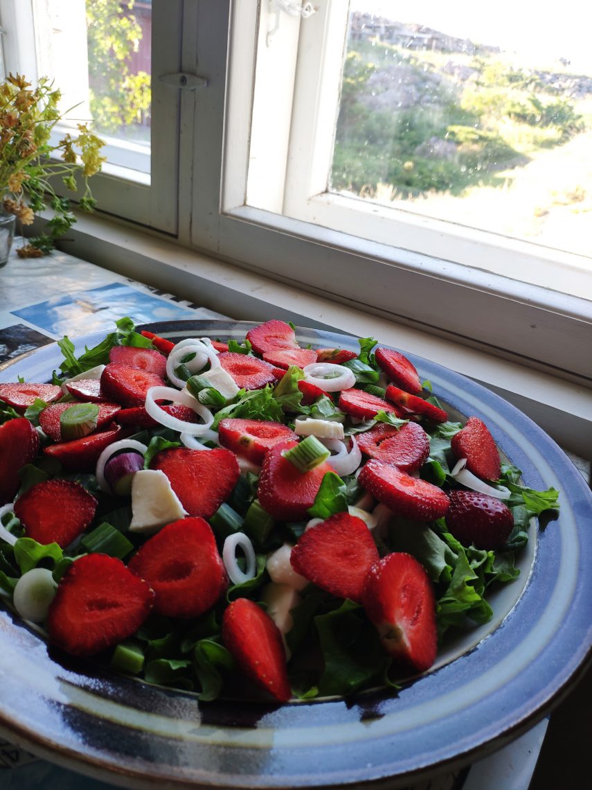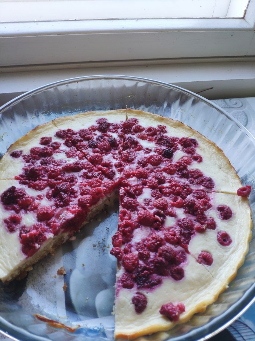 Aamukahvien jälkeen Anne leipoi omenapiirakkaa ja Gustun vadelmista tehtyä vadelma-rahkatorttua. Saku oli bongannut hyvän vadelmasadon lähellä muuria.
