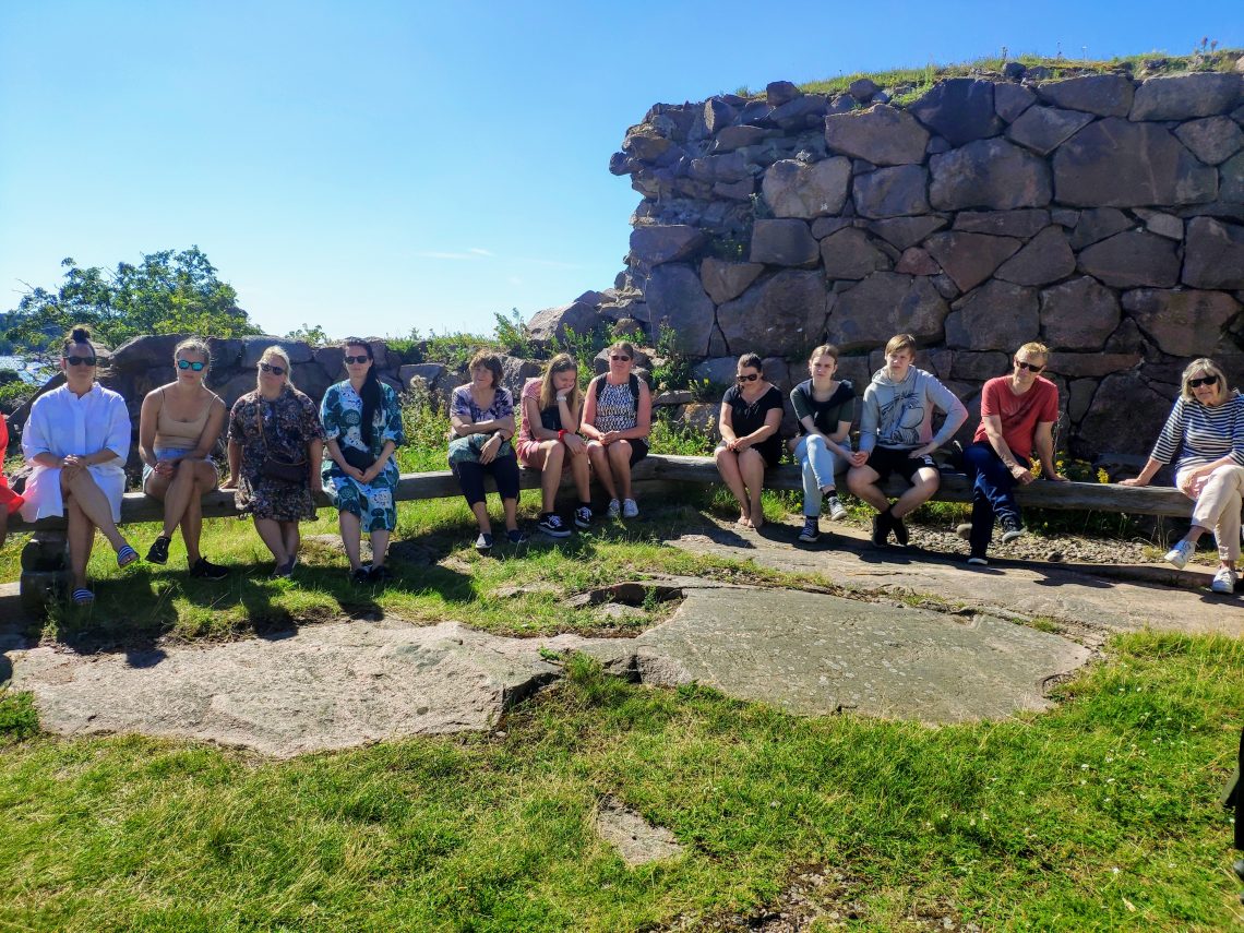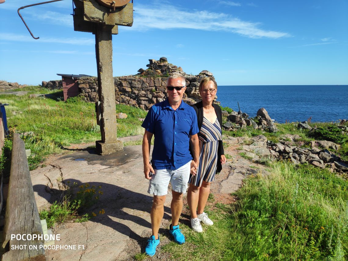 Yhdentoista jälkeen saimme ensimmäisen vieraan; Gustu-veteraani Tapio Kekkosen. Hän kävi kuvaamassa dronella saarta sekä otti muutamia kuvia järkkärillään. Puoli kolmen aikaan saapui äiti kolmen lapsensa kanssa ja he viipyivät hetken ostaen samalla kalenterin. Kolmelta saapuikin sitten Panda-alus, jonka kyydissä oli 15 vierasta. He kuuntelivat opastusta mielenkiinnolla ja kahvittelivat myös hyvän tovin. Jopa sellaisen tovin, että Pandan kippari Jokke soitti Gustun puhelimeen tiedustellen “joko ne joutaa”. Heidän lähtönsä jälkeen saapui moottoriveneellä mukava pariskunta, jotka olivat myös Gustu-veteraaneja. He huomasivat muurin rapautuneen edellisvuodesta monin paikoin. Samalla tuli satamaan myös iso purjevene, kyydissään nelihenkinen perhe isä, äiti ja kaksi lasta. Edellisenä päivänä purjehtiessaan Hankoon, he olivat katsoneet, ettei Majakkaseuran lippu ollut salossa. Tänään lähtiessään kohti koti-Helsinkiä he kuitenkin bongasivat lippumme ja käänsivät kokan kohti saarta. Perhe oli lomansa aikana tavannut jo muitakin Majakkaseuralaisia Märketillä. Majakkaseura sai päivän aikana paljon positiivista palautetta!